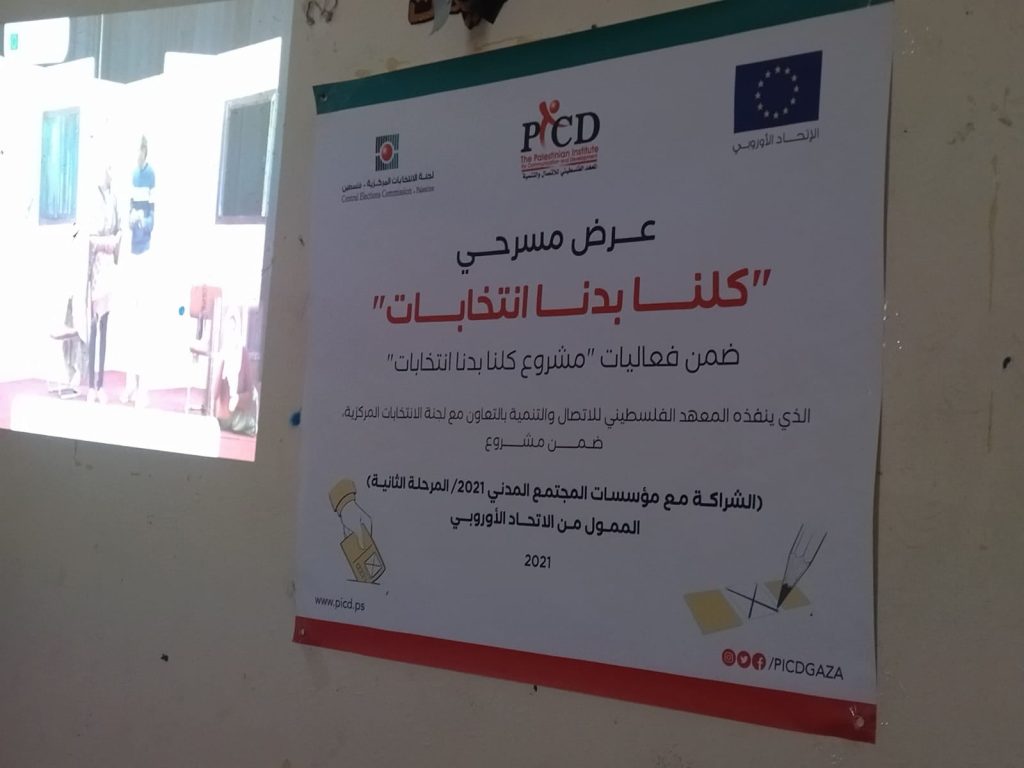 بتاريخ12/12/2021 نفذت الجمعية ورشة عمل ضمن فعاليات مشروع “كلنا بدنا انتخابات”. نفذه المعهد الفلسطيني للاتصال والتنمية بالتعاون مع لجنة الانتخابات المركزية ضمن مشروع”الشراكة مع مؤسسات المجتمع المدني والممول من الاتحاد الأوروبي وقامت الأستاذة هبة العبادلة بتنفيذ اللقاء. حيث تهدف هذه اللقاءات الى تعزيز مقدرة الشباب على المشاركة السياسية ودورهم في المجتمع .