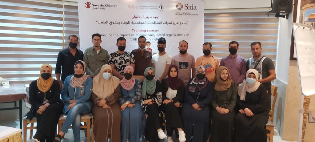 شاركت الجمعية في دورة تدريبية عنوانها”بناء قدرات المنظمات المجتمعية في تطوير سياسات حماية الطفل” ممثلة بالاستاذ(عبد الحي الفرا) والاستاذة(يقين أبو صعيليك) . حيث كان يهدف التدريب الى تعزيز بناء قدرات المؤسسات في اعداد وتطوير أوراق السياسات لحماية الطفل واستهدف التدريب 30 مشارك من 30 مؤسسة مجتمعية في قطاع غزة.